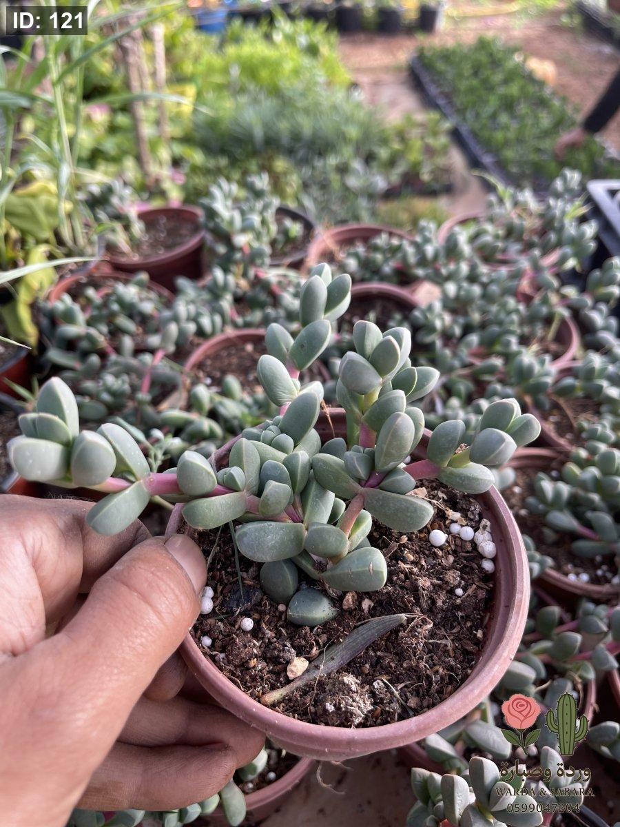 "أضف لمسة من السحر الطبيعي لمجموعتك مع نبتة 'أصابع الثلج' الفريدة. تتميز هذه النبتة بأوراقها اللحمية الممتلئة ذات اللون الأخضر المائل للأزرق (الباستيل)، والتي تنمو في أزواج متقابلة لتشكل سلاسل جذابة. هي نبتة مثالية للمساحات الصغيرة والأصص الأنيقة، وتمتاز بقدرتها العالية على تخزين المياه، مما يجعلها سهلة العناية جداً ومناسبة لمن يبحث عن الجمال بأقل مجهود."