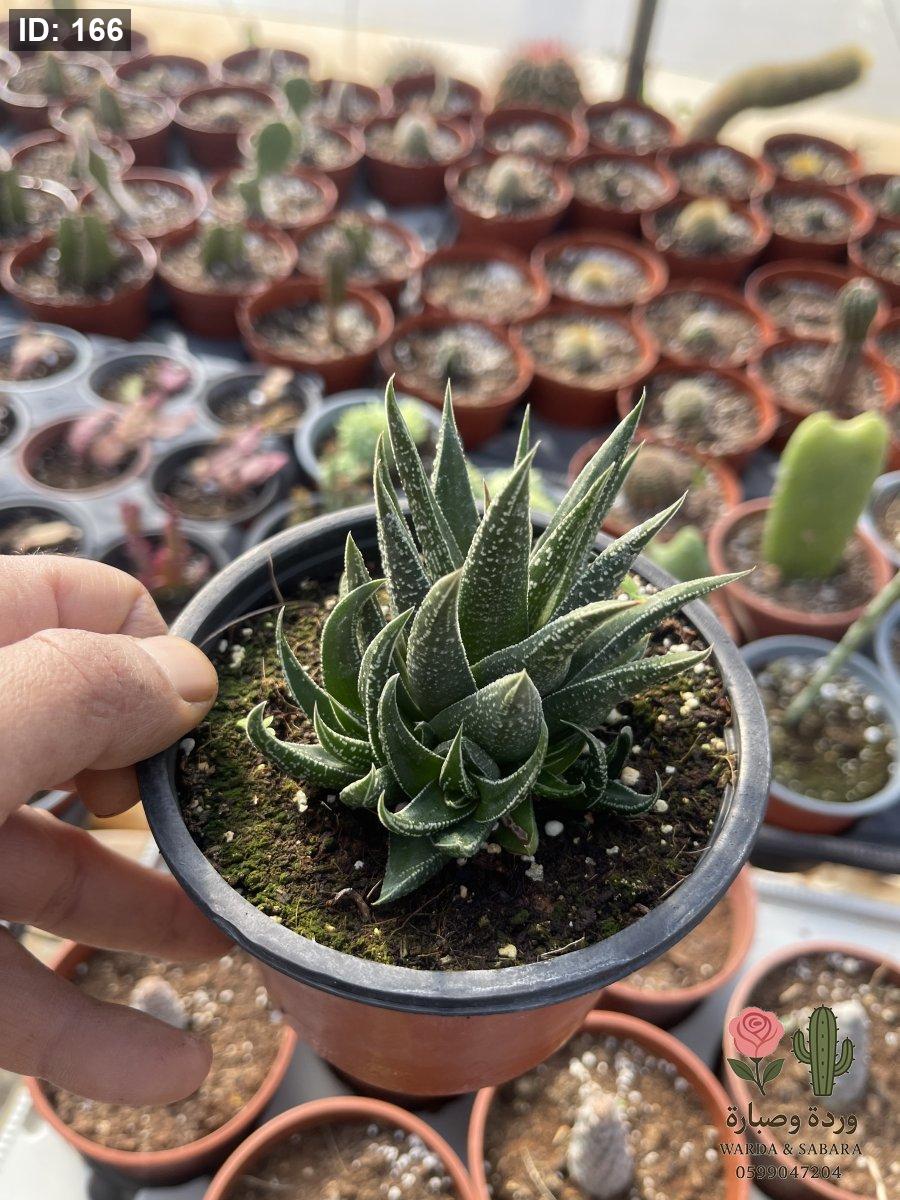 نبتة عصارية أنيقة تتميز بأوراقها الخضراء الداكنة والمدببة التي تزينها خطوط أو نقاط بيضاء بارزة، مما يعطيها مظهراً مرخمياً فريداً.