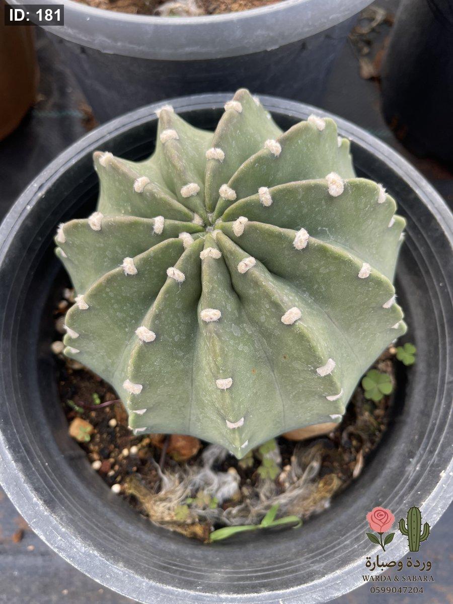 يُعد هذا الصبار من أكثر الأنواع تميزاً وفخامة، حيث يشتهر بشكله الهندسي الذي يشبه النجمة عند النظر إليه من الأعلى. يتميز بجسمه الأخضر الداكن المضلع وبخلوه من الأشواك التقليدية الحادة، حيث تحل مكانها نقاط بيضاء صوفية ناعمة تسمى "Areoles"، مما يجعله نبتة مثالية لمحبي التصاميم الهادئة والراقية.