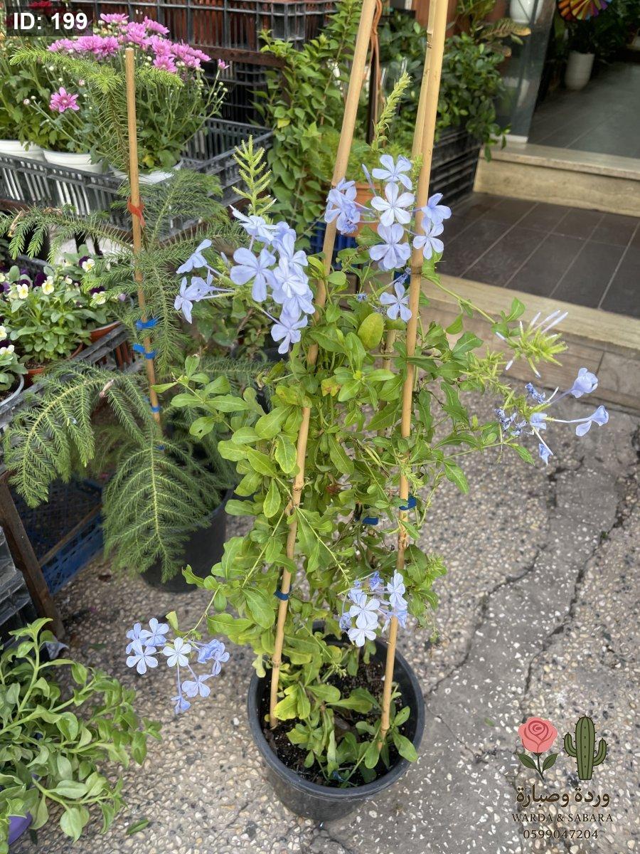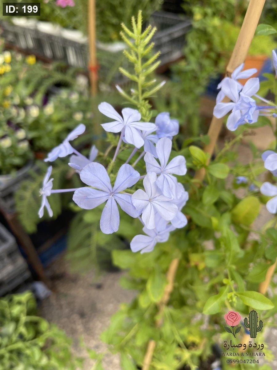 • الوصف: شجيرة زينة متهدلة أو متسلقة (عند توفير دعامة)، تمتاز بأزهارها الرقيقة ذات اللون الأزرق السماوي التي تظهر في عناقيد جذابة. هي نبتة "سخية" جداً في التزهير، وتضيف لمسة من البرودة والجمال في أيام الصيف الحارة بفضل لونها المميز.