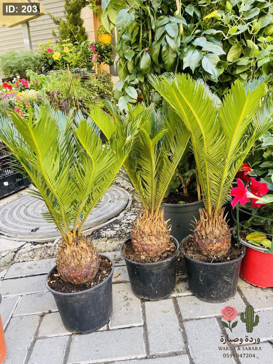 • الأصص (المراكن) الفاخرة: كما يظهر في صورتك، يزرع السيكاس في أصص متوسطة الحجم ليوضع عند المداخل أو في زوايا المجالس الواسعة ليعطي لمسة من الفخامة الكلاسيكية.