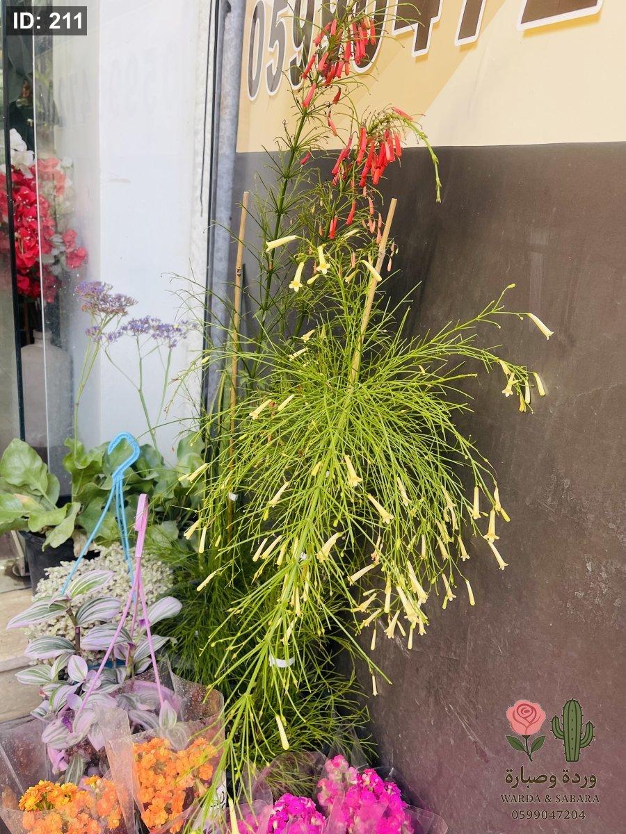 • الوصف: نبتة متهدلة رائعة تمتاز بسيقانها الرفيعة التي تشبه الأسلاك، وتغطيها أزهار أنبوبية صغيرة باللونين الأحمر والأصفر (كما يظهر في صورتك).