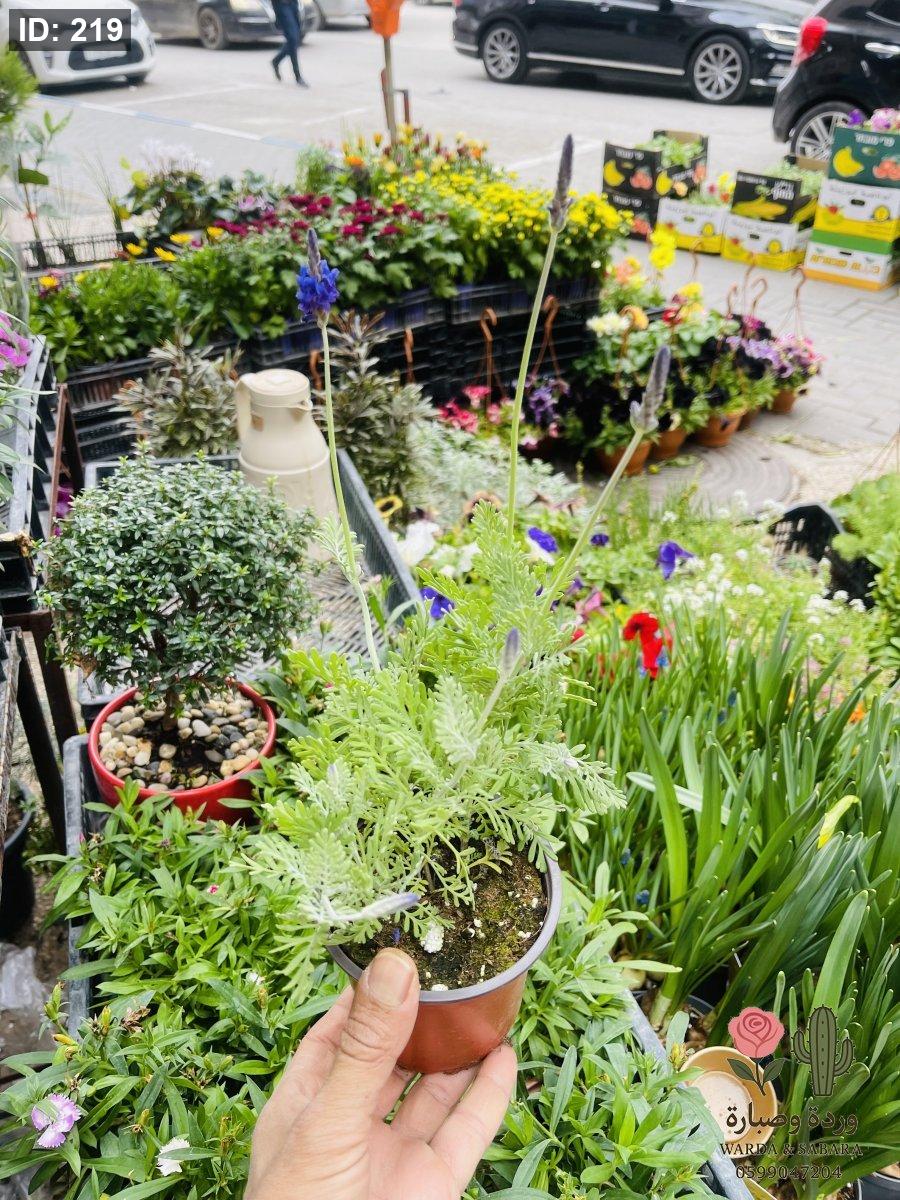 • الوصف: نبتة عطرية مشهورة جداً بأوراقها الفضية المشرشرة وأزهارها البنفسجية الطويلة التي تفوح برائحة مهدئة وجميلة.