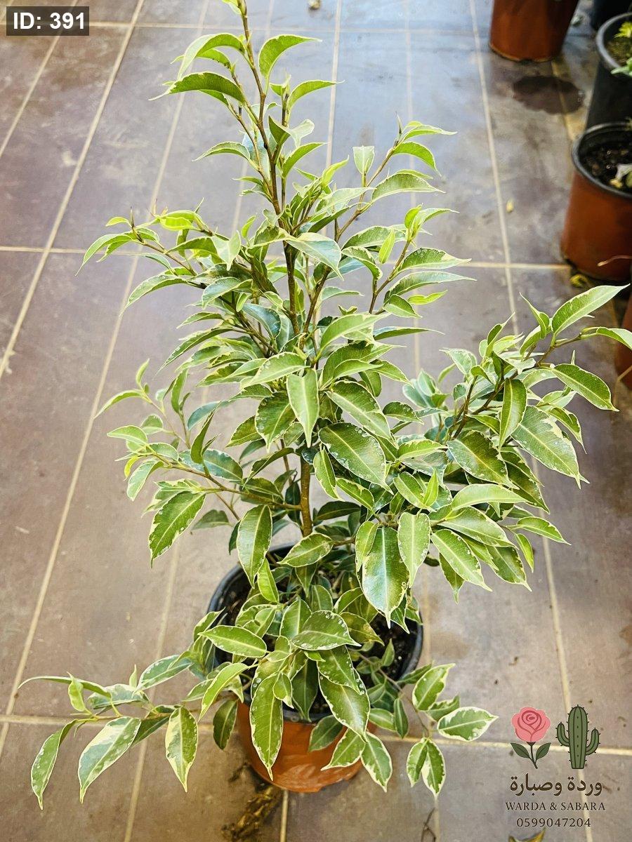 تعتبر نبتة الفيكس المبرقشة من أرقى نباتات الزينة الداخلية، حيث تضفي أوراقها الثنائية اللون (الأخضر والبيج) لمسة من الضوء والحيوية على أي ركن توضع فيه. تصميمها الشجري يجعلها مثالية لتكون قطعة مركزية جذابة في غرف المعيشة أو المكاتب.